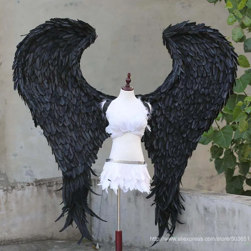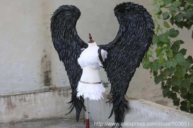 big size Devil wings pure handmade high quality craft Black angel feather wings creative shooting p