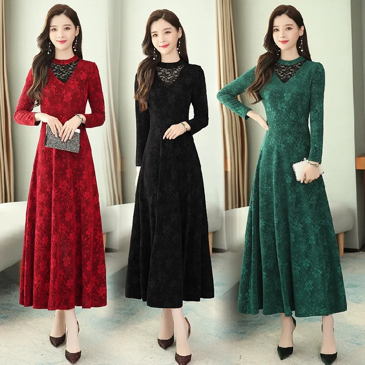 HOT Sale Photo Shoot 2019 New Style WOMEN'S Dress Slim Fit Slimming Long Sleeve Knitted Jacquard Dress Mid-l