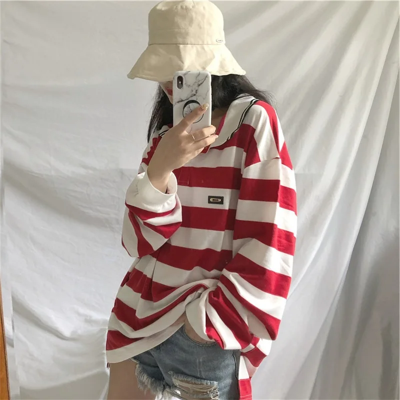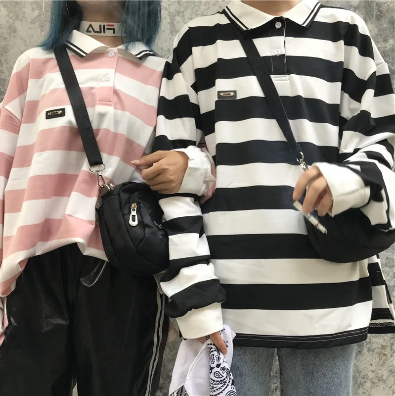 BEST QUALITY Photo Shoot Couple Clothes Women's Autumn 2019 New Style South Korea Ulzzang Loose-Fit Stripes Polo