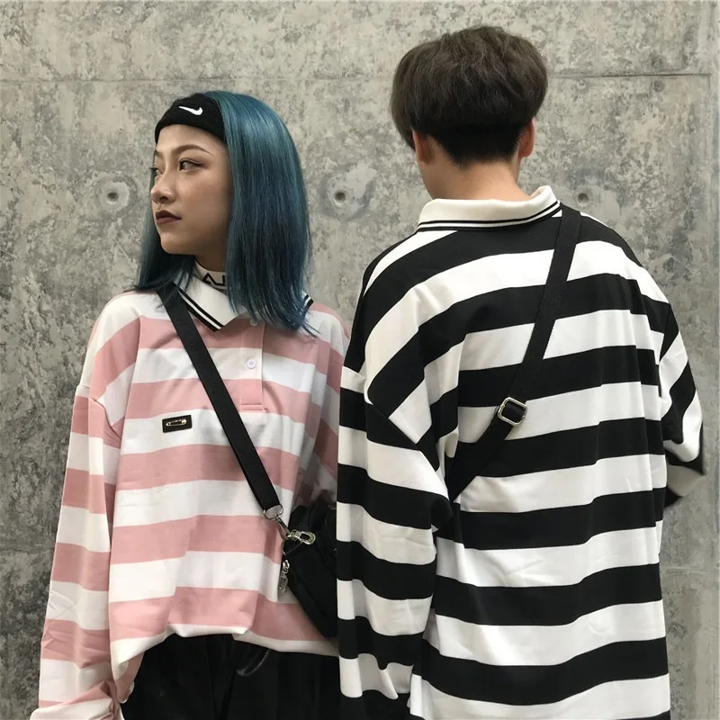 Photo Shoot Couple Clothes Women's Autumn 2019 New Style South Korea Ulzzang Loose-Fit Stripes Polo