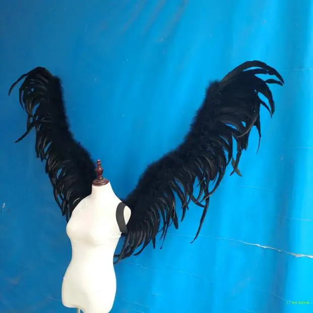 black angel feather wing adult model show shooting prop party real cock feather wing for Halloween
