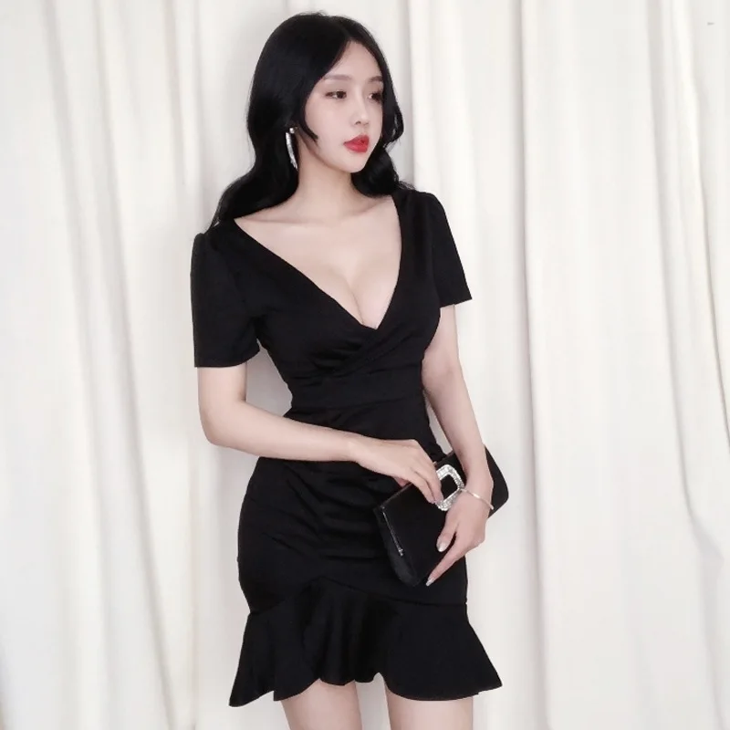 REVIEW TOP SELLER Photo Shoot ~ Online Celebrity Elegant Evening Show Sexy Debutante Low-Cut Cross V-neck Short Sleev