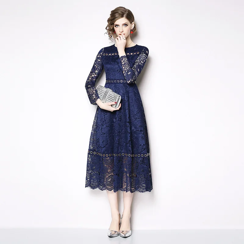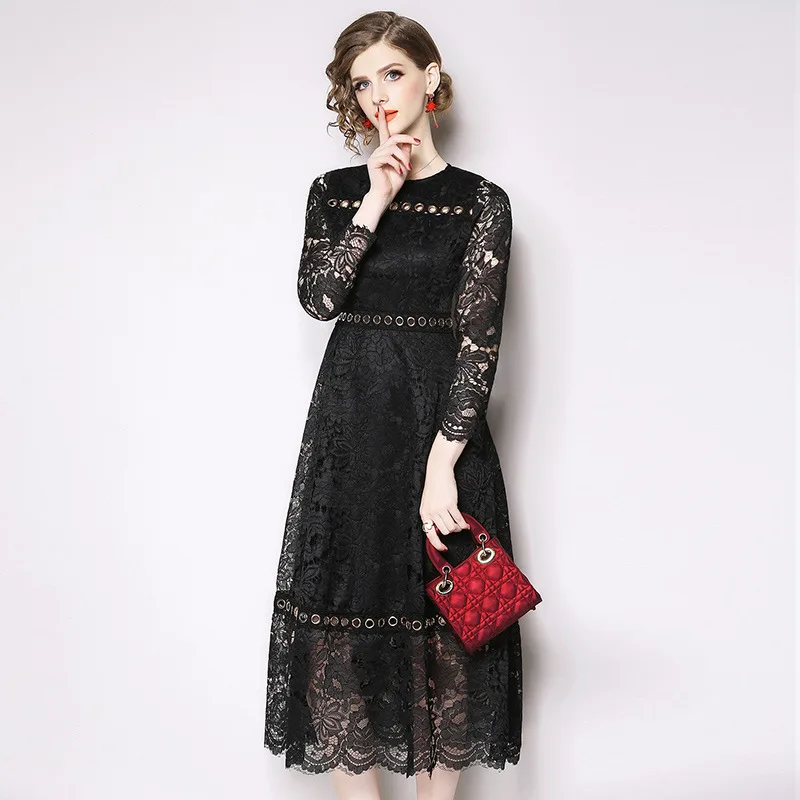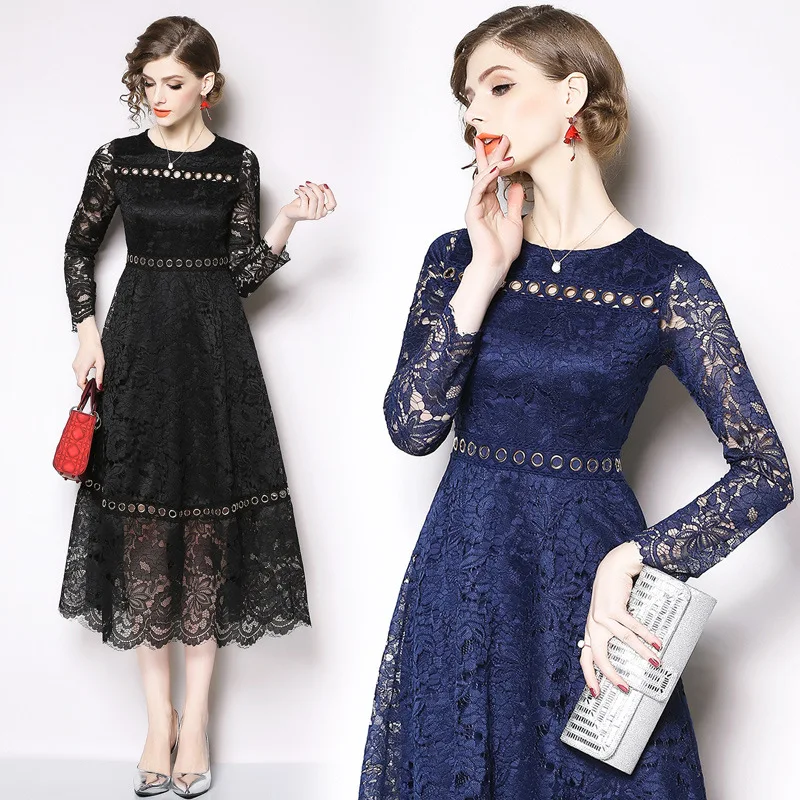 Photo Shoot 2018 Ozhouzhan New Products Lace Long Skirts Slim Fit Slimming Joint Metal Buckle Dress