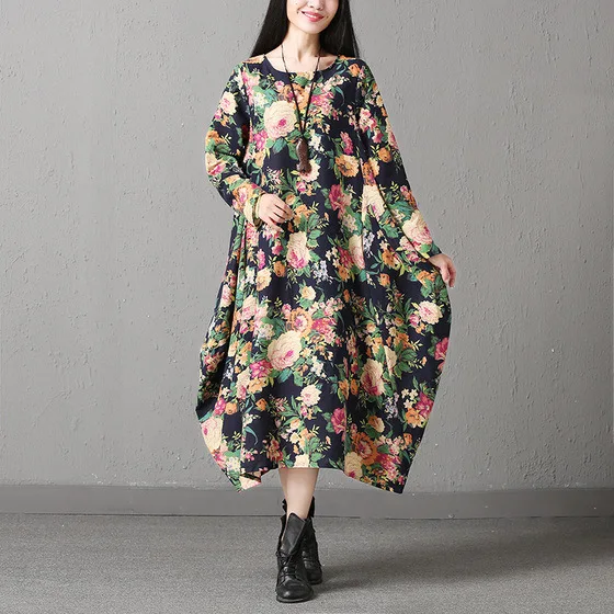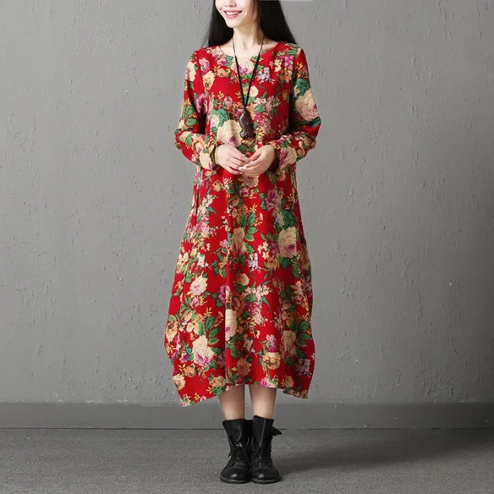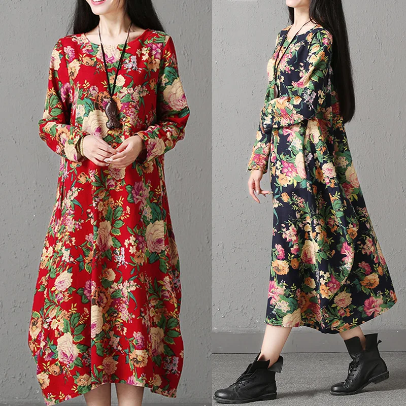 REVIEW TOP SELLER Photo Shoot Ethnic Literature And Art Retro Loose Long Skirts Long Sleeve Cotton Linen Dress 2019 A