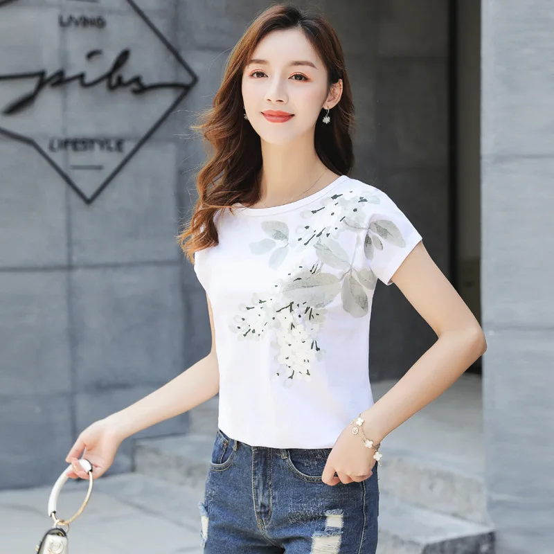 REVIEW TOP SELLER Photo Shoot Video 2019 Summer Loose-Fit Printed Crew Neck Fashion Bat Sleeve Short Sleeve T-shirt W